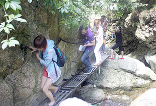 在湖南省安化縣的崇山峻嶺和山澗溪流之間,綿延著一條神秘的茶馬古道。千百年來,無數(shù)的馬幫在這條道路上默默行走,悠遠的馬鈴聲,回蕩在山谷、急流和村寨上空,開辟了一條通往域外的經(jīng)貿之路,形成了世界上地勢最高、山路最險、距離最遙遠的茶馬文明古道。在關山峽谷層巖疊翠,怪石嶙峋的道路上行走,綠之韻同仁們盡情體驗了一番攀巖探險的刺激和樂趣。正是因為古道的艱險超乎尋常,沿途壯麗的自然景觀也不斷地激發(fā)人潛在的勇氣、力量和忍耐?!榜R幫憑借自己的剛毅、勇敢和智慧,用心血和汗水澆灌了一條通往茶馬古道的生存之路、探險之路和人生之路。茶馬古道上馬蹄印仍歷歷在目,帶著我們遙憶先輩們的經(jīng)貿故事,值得我們深思和學習!”綠之韻董事常務副總裁勞嘉深深感慨道。