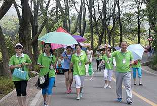 上午10時,綠之韻營銷精英2013韶山紅色之旅一行抵達了魂牽夢繞的美麗韶山。第一站,來到毛澤東銅像廣場,瞻仰偉大的毛主席。毛主席銅像立于高高的紅色花崗巖石基座上,背靠韶峰,主席身軀偉岸,手握書卷,雙眼炯炯有神,面帶微笑地注視著廣場,注視著遠方,仿佛在歡迎遠來的客人和世界各地的朋友,主席又似乎停步思考著天下的大事,一派學者風范。胡國安董事長不畏炎熱,百忙之中驅車來到偉人故里,來到綠之韻伙伴們身邊,追憶往昔,敘說衷腸,暢享夢想,伙伴們興奮不已、激情四溢,整齊有序排好隊列和胡國安董事長一一合影留念。接著,在胡國安董事長的引領下,大家懷著無比崇敬的心情向毛主席的銅像獻花、敬禮,向毛主席三鞠躬,像全國各地奔向韶山沖的人們一樣,通過這種最傳統(tǒng)的方式來祝福、紀念、緬懷……站在巨大的塑像腳下,一種自豪而激動地情懷油然而生,綠之韻們伙伴們不禁讓我想起毛主席那豪邁飄逸的詩篇《沁園春?雪》:“數風流人物,還看今朝”。
