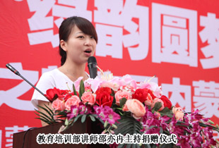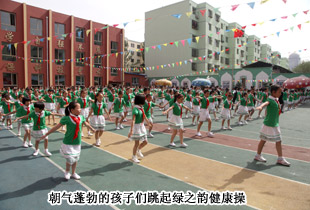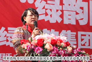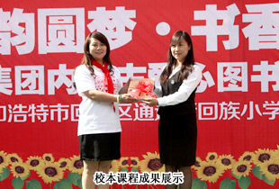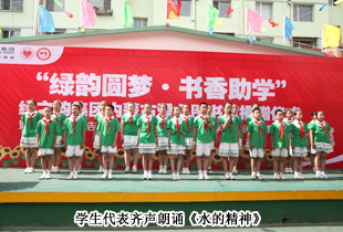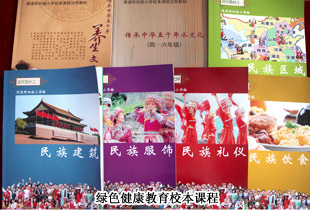 內(nèi)蒙古呼和浩特回民區(qū)通道街回族小學(xué)作為綠之韻“樹人行動”定點支教學(xué)校,校園文化建設(shè)、校本課程開發(fā)及辦學(xué)特色的打造一直受到綠之韻集團(tuán)的關(guān)注。在綠之韻的幫助和影響下,通道街回族小學(xué)獨辟蹊徑,彰顯特色,將與綠之韻一脈相承的“水的精神”根植于學(xué)校德育的沃土,引進(jìn)了民族企業(yè)綠之韻健康理念和綠色健康操,形成了《民族區(qū)域》、《民族建筑》、《民族服飾》、《民族禮儀》、《民族飲食》系列德育校本教材,并開發(fā)了獨具特色的綠色健康教育校本《中華五千年養(yǎng)生文化》和《中華五千年水文化》。目前,這套教材正在申報全國“十一五”德育課題優(yōu)秀成果獎。在現(xiàn)場,學(xué)生代表們用稚氣而嘹亮的嗓音齊聲朗誦“水的精神”,朝氣蓬勃地跳著歡快動感的健康操,向與會領(lǐng)導(dǎo)和愛心人士們展示著校本課程的成果。