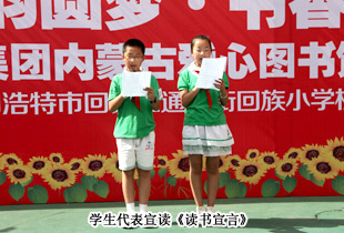 “匯愛心,聚溫暖;集力量,圓夢想;傳書籍,共成長”。當(dāng)一本本圖書交到孩子們手上時,紅撲撲的小臉上綻放出燦爛的笑容,仿佛看見了孩子們的金色未來?;顒蝇F(xiàn)場,五年級二班的兩名學(xué)生代表宣讀了《讀書宣言》:“共上一所學(xué),同讀一本書。我們要感謝各位綠之韻富有愛心的叔叔阿姨們,給我們送來了這么多的好書,我們一定不辜負(fù)你們的希望,認(rèn)真學(xué)習(xí),茁壯成長。同時,我們想對在座的同學(xué)們說:書是我們學(xué)生的好朋友,它能讓我們學(xué)到知識,交到朋友。我在此發(fā)出倡議,每位同學(xué)一定要珍惜手里的每本書,積極在同學(xué)之間傳閱這些書,分享書里面的知識與快樂,一起探討書中的奧妙,共同走進(jìn)知識的大門。”